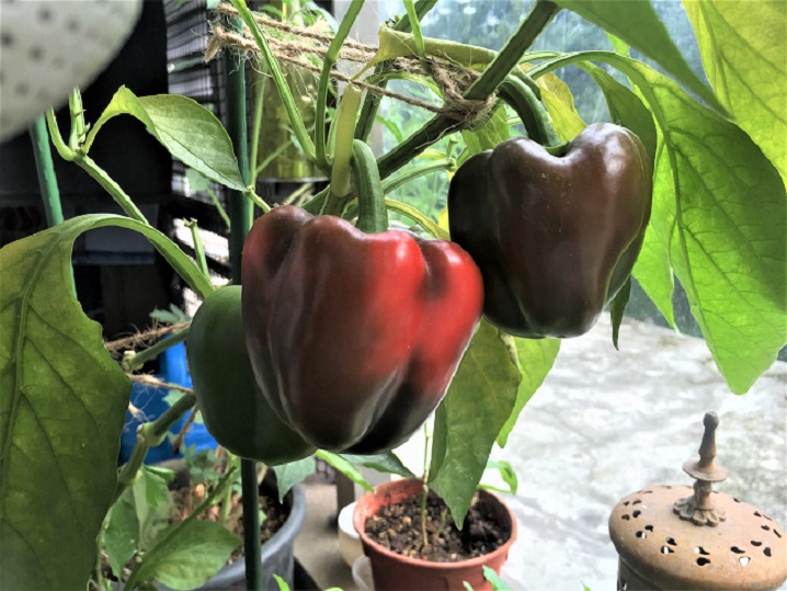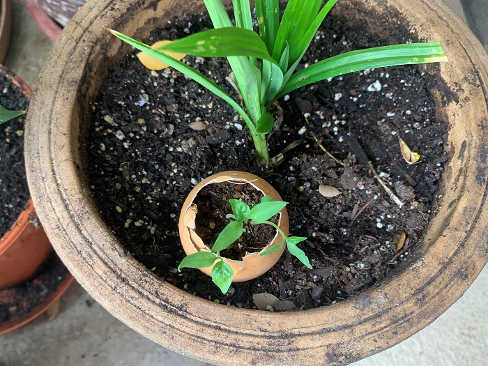 Now? I never question anything that pops out. I wait till there is a couple of sets of leaves , prick out, pot up and nurture the plants to production maturity. The balcony has become a kitchen garden that keeps on giving. Currently the harvest is lush from a Chili Padi (Birdseye Chili), that started life in a tiny amount of soil in an eggshell (see photo at top), with the seeds from a store bought Chili. So far this one potted plant has produced well over 200 Chili Padi’s, with around 50 more still ripening. Standard Chili and more Capsicums have just been potted up. On a side note, I had bought packet Chili Padi of a reputable seed brand and not even one germinated. Maybe my sprouting days are over!