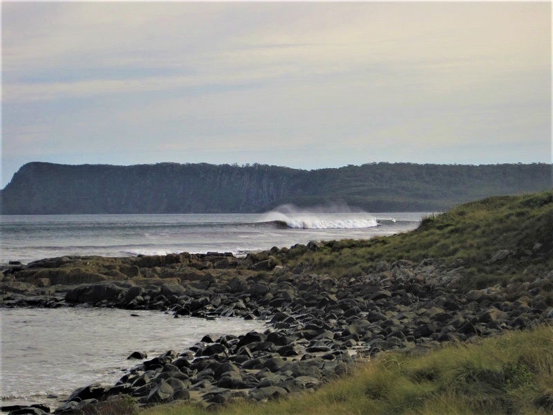 Surfers have to travel in Tasmania. So many nooks, bays and headlands facing all sorts of directions. Swell direction, tides and winds massively influence the quality of surf. What is onshore and slop in one location, could be offshore and sweet just around the corner. Sometimes the entire day could be spent searching, only to end up at home again later with nary a drop of salty water on the head. There is always somewhere a bit better than the first location checked (the surfers lament), but by the time you get there, the wind has changed direction or the tide has dropped to present mush. Back to the first spot that was okay early and now too late. That too has been blown out by the wind!